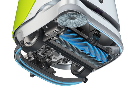 Der Roboter fährt autonom oder kann dank Dual-Mode auch gesteuert werden. In jedem Fall ist er dabei ein echter Allrounder – er kehrt, saugt, schrubbt und wischt. Sowohl harte Böden – etwa Fliesen, Kunststoffböden oder Marmor – als auch weiche Teppiche sind für ihn gar kein Problem.